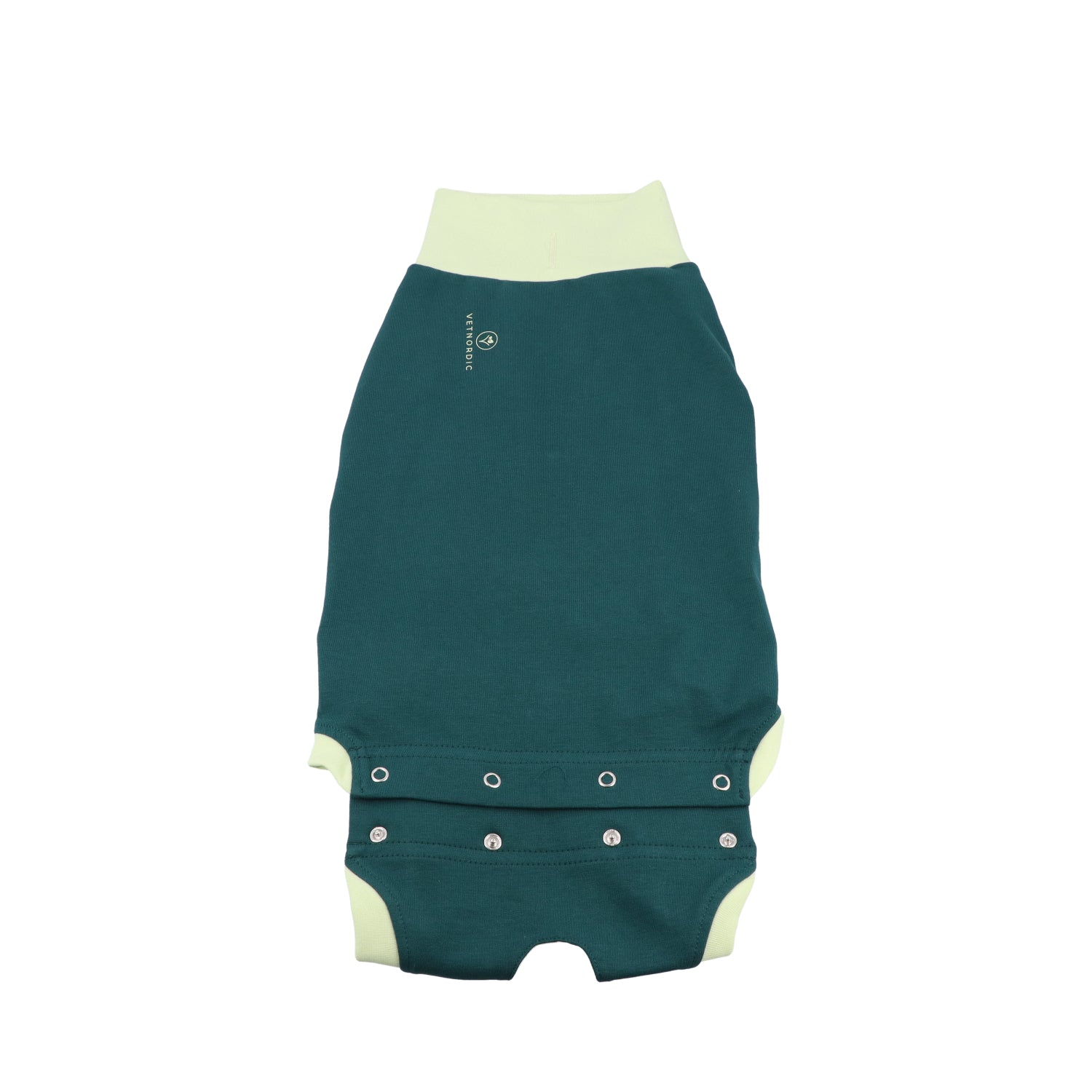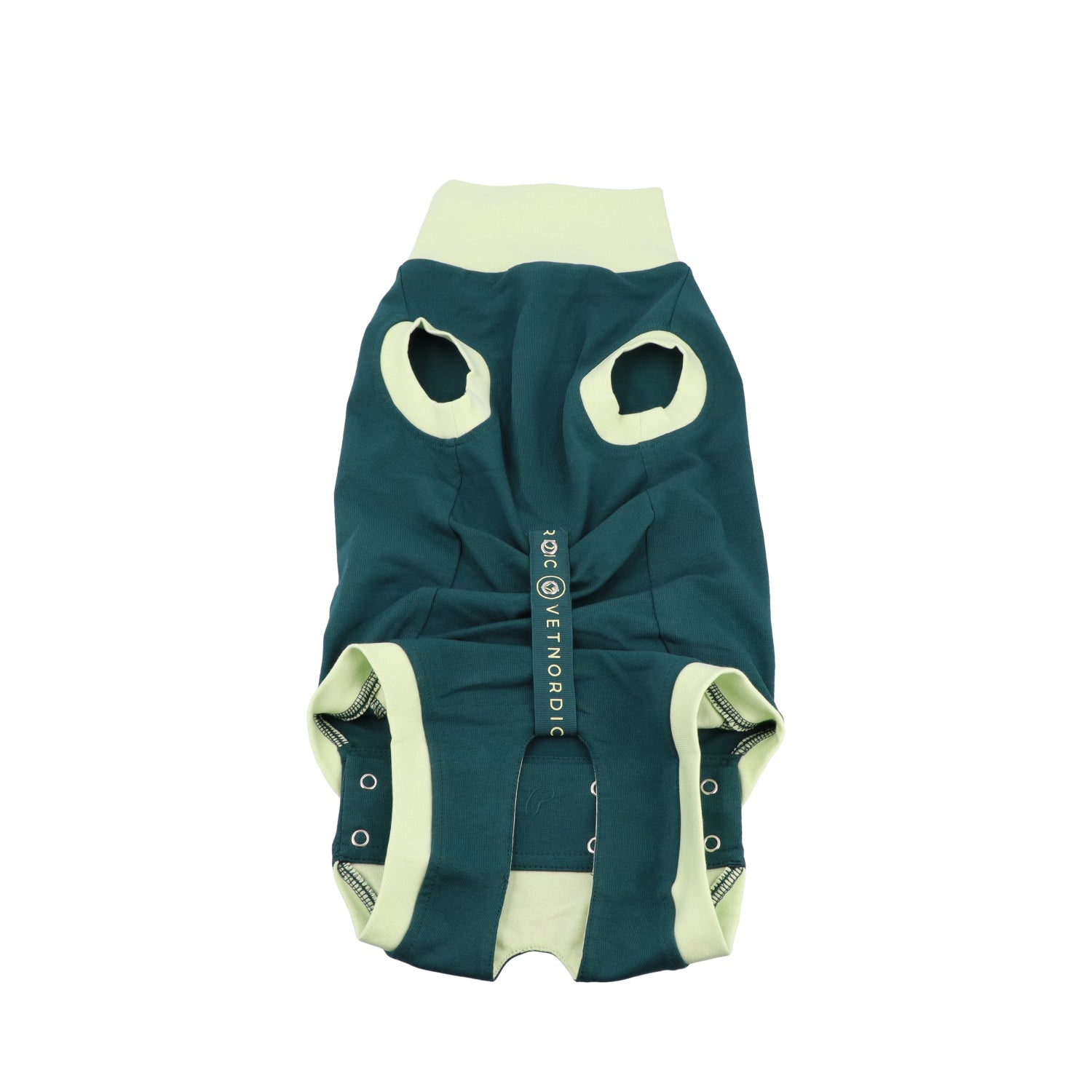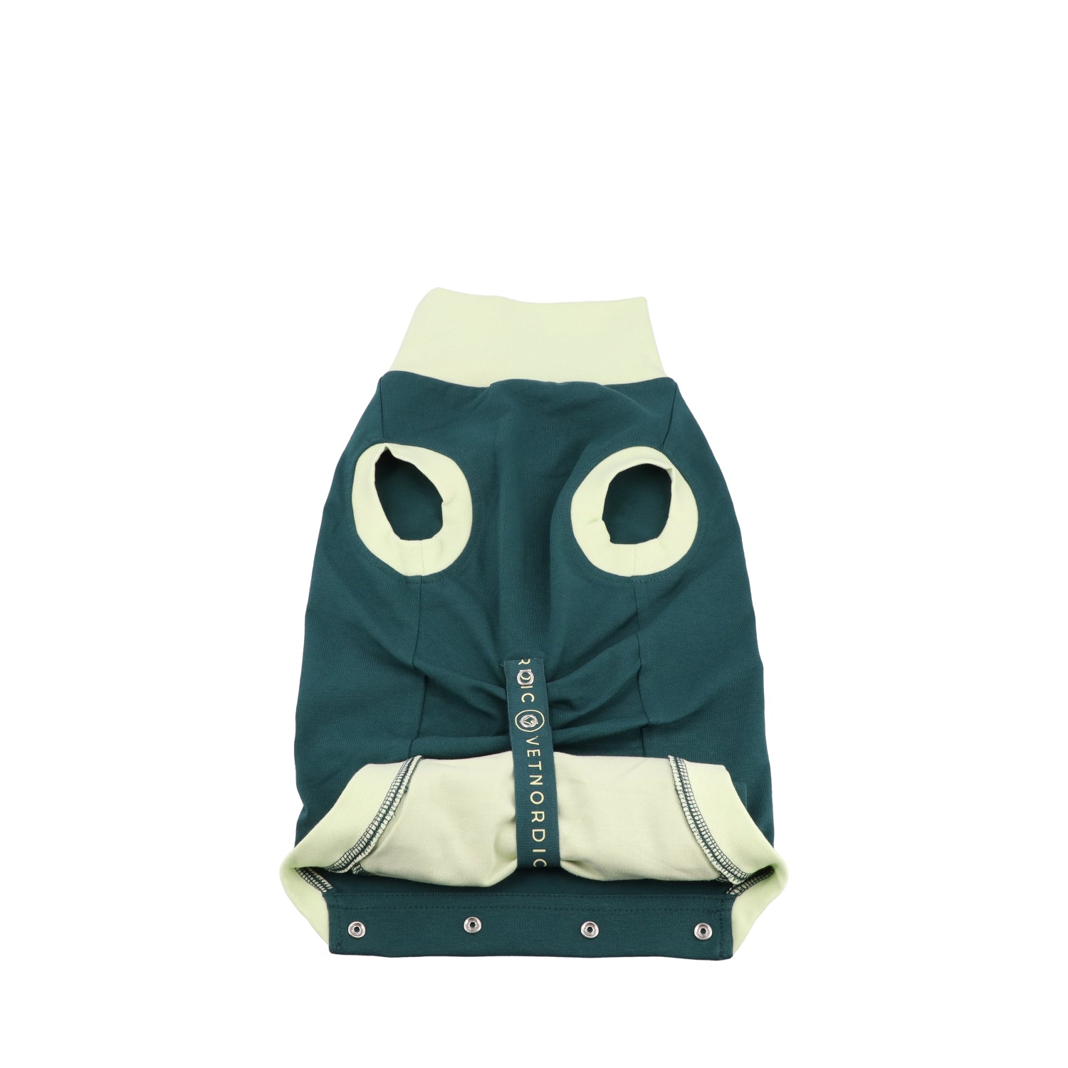 Overal má dodatečnou vrstvu látky kolem otvoru pro ocas a dvojitou žebrovanou vrstvu kolem krku a otvorů pro přední a zadní končetiny.